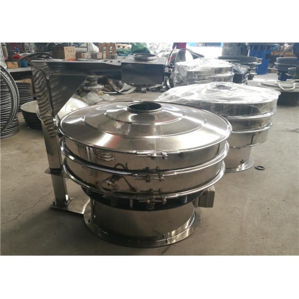 Stainless Steel Juice Filtering Sieve Machine Rotary Vibrating Screen is a high precision fine powder sieving machine. The fundamental principle of round separator is that the eccentric hammers installed on the top and bottom ends of motor changes the rotation motion of motor to horizontal, vertical and inclined three-dimensional motions, and then passes this motion to screen surface, achieving the purpose of classification, filtering and removal of impurities.